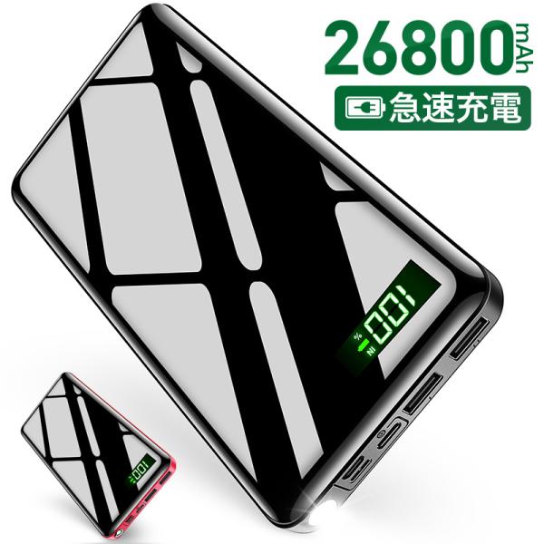 モバイルバッテリー 26800mAh 大容量 LCD電量残量 LED懐中灯付 急速充電器 USB充電器 スマホ 電池 持ち運び 防災グッズ 旅行 機内持込み