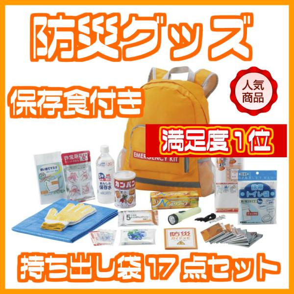 送料無料 防災グッズ 1人用 非常 持ち出し袋 緊急 防災 17点 セット 500A 8-500A 非常食 カンパン 保存水付 避難 災害